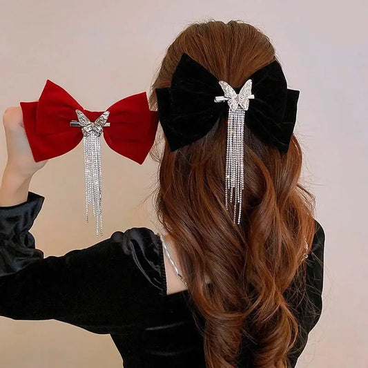Barrette Cheveux Femme Chic | Nœud de Fête en Velours Strass